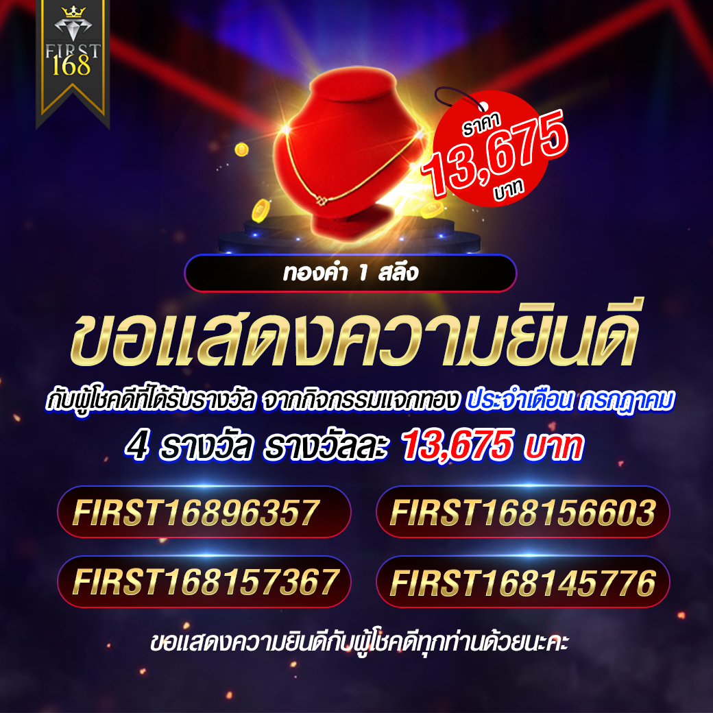 ✨รายชื่อผู้โชคดี กิจกรรมลุ้นรับทองคำ 1 สลึง ประจำเดือน กรกฎาคม